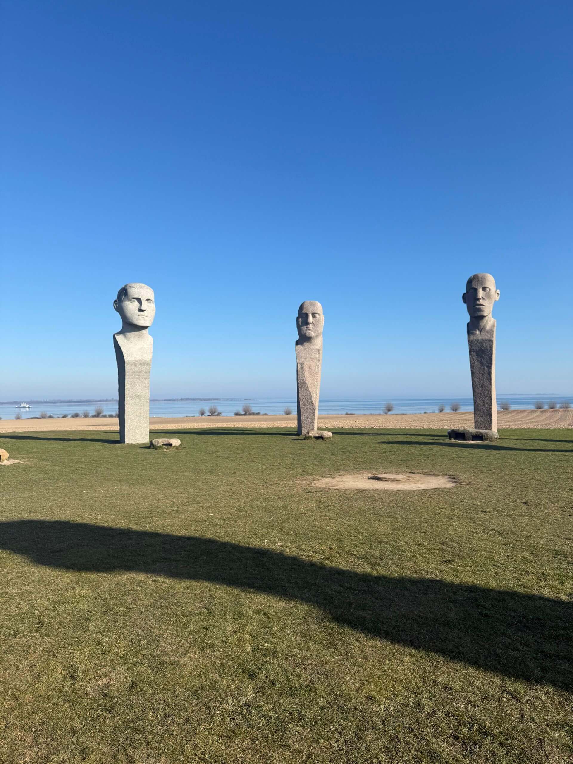 Es ist auch etwas entfernt von Stubbekøbing, aber absolut sehenswert. Das letzte Stück (ca. 1,2 km) bis zum Ziel müsst Ihr zu Fuß über ein Feld gehen. Fast den ganzen Weg über, seht Ihr die Köpfe in der Ferne und schon der Anblick der riesigen Skulpturen ist absolut spektakulär.