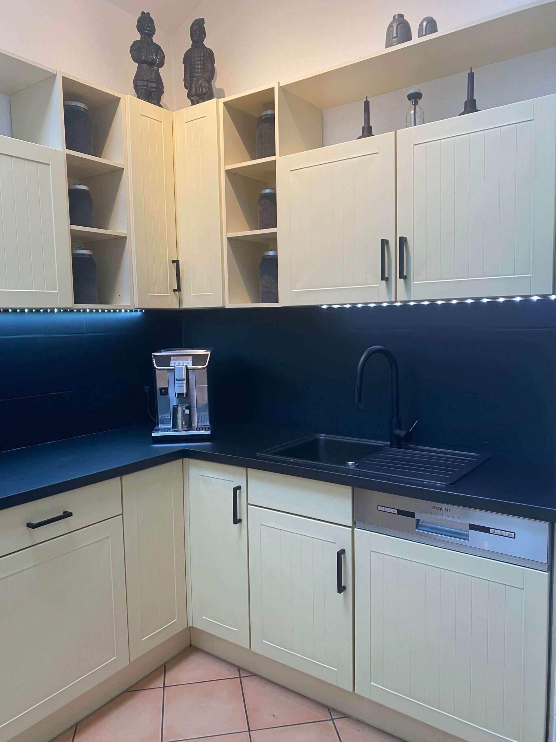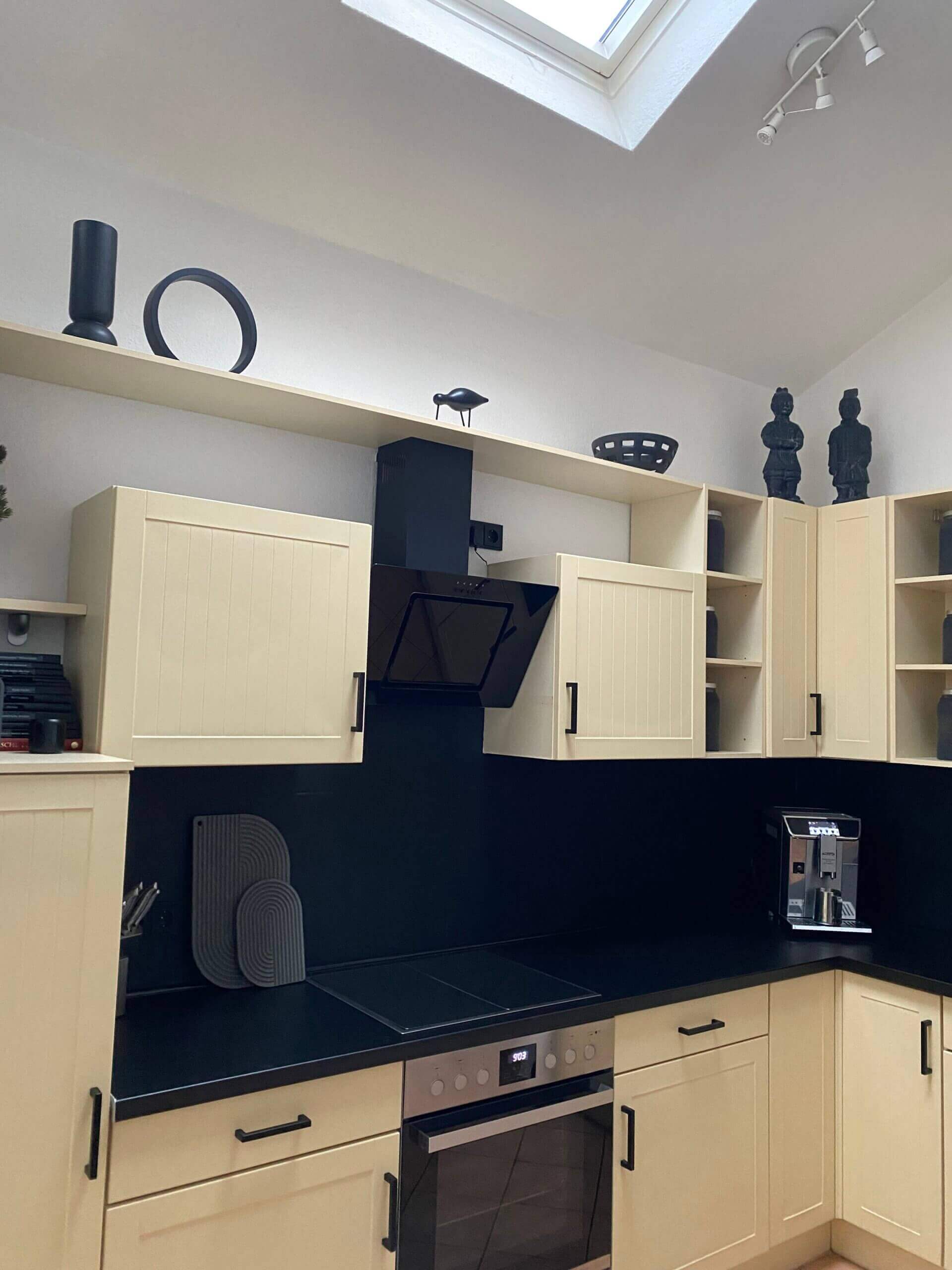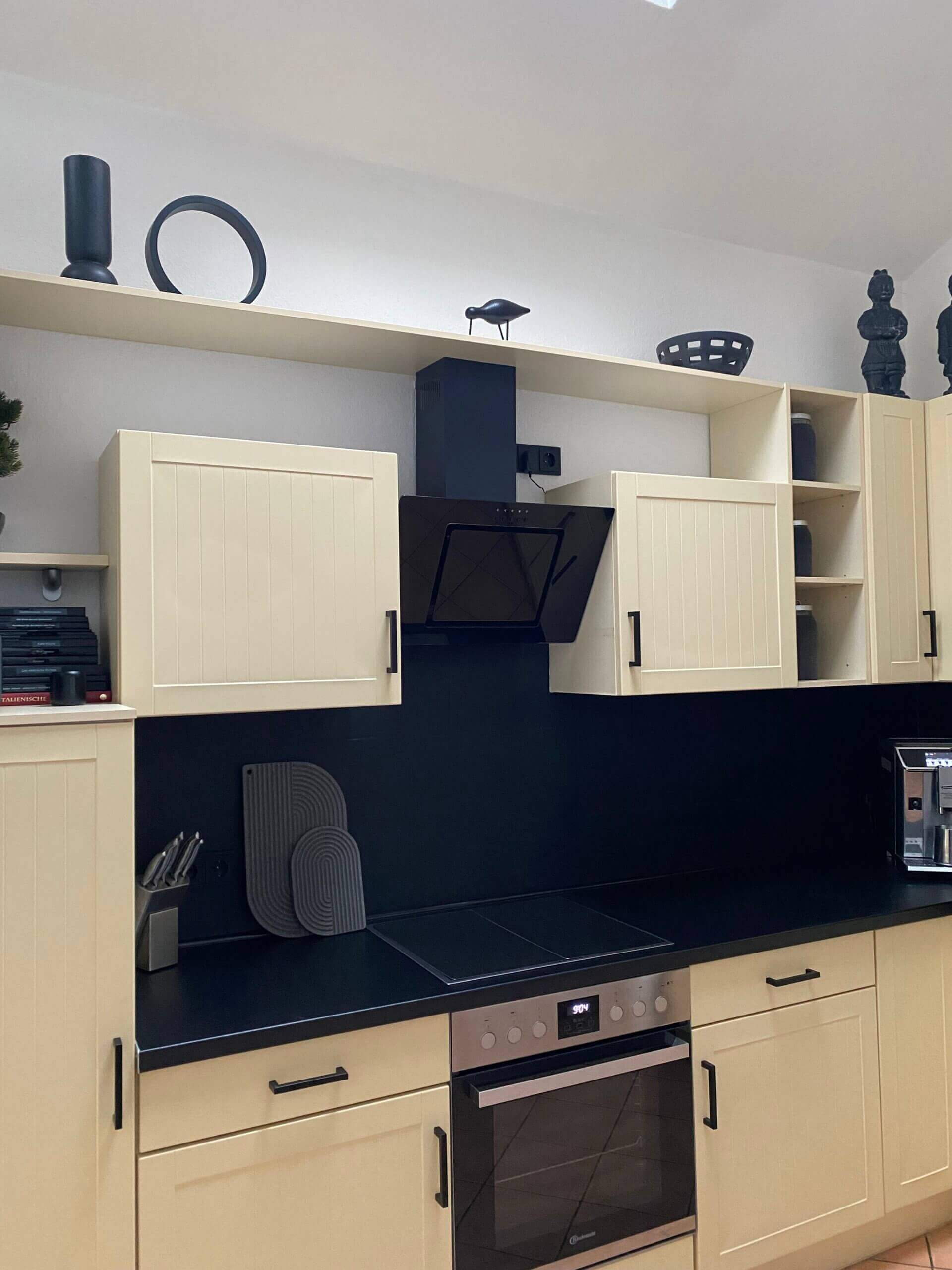Auch nach einigen Monaten freue ich mich jeden Tag über die Neugestaltung unserer Küche. Allen Unkenrufen zum Trotz haben wir uns nicht beirren lassen und unser gewähltes Farbkonzept durchgezogen. Wir lieben die Kombination aus Schwarz und Vanille und würden es wieder genauso machen.